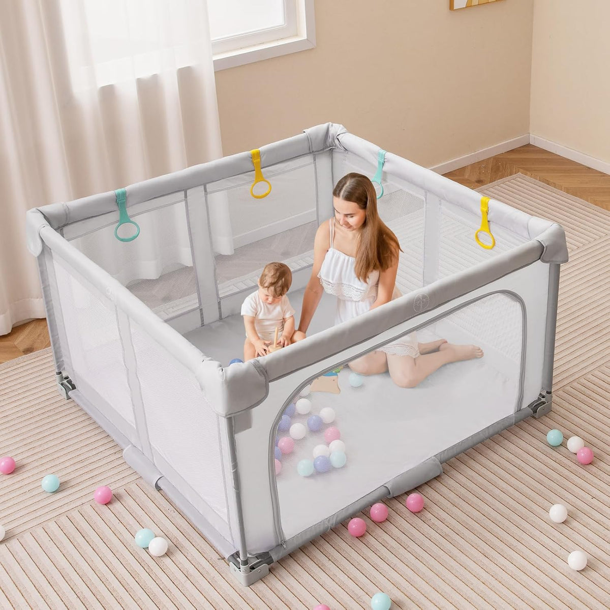 - Easy Access & Engaging Fun: This play yard is equipped with a convenient zip-open side door that offers easy in-and-out for babies and toddlers. Included accessories are 50 colorful ocean balls and 4 pull-up rings to promote physical activity and motor skills development.