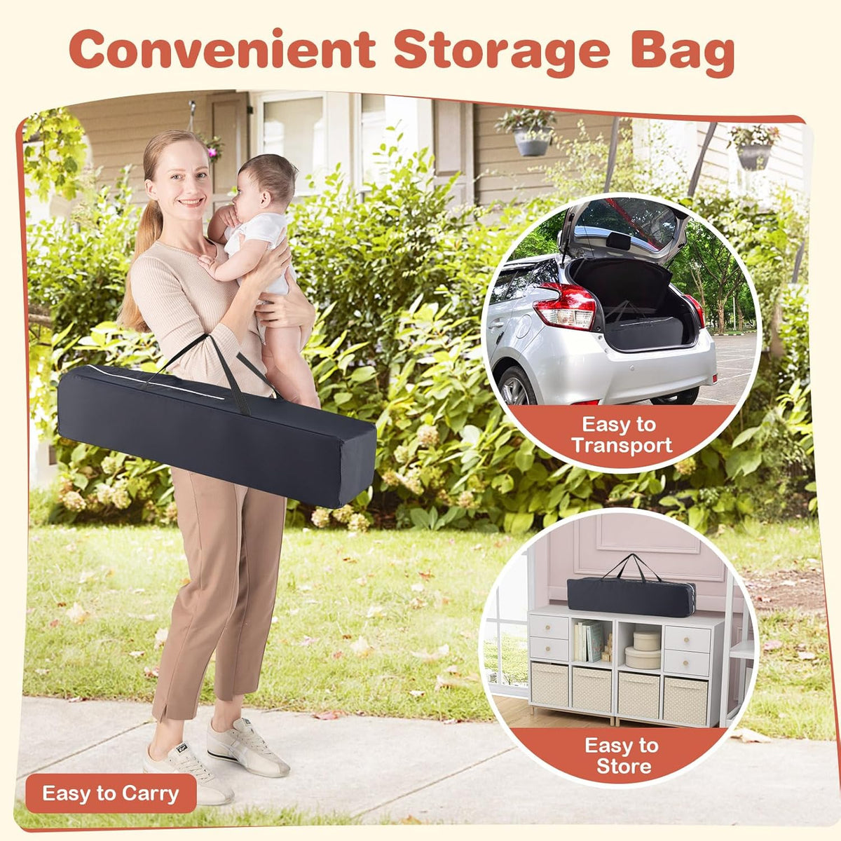 - Zippered Doors & Visible Mesh: With 2 arched doors, parents can interact with babies easily. Babies will not be able to unzip the doors and get out since the doors can only be opened with the zipper on the outside. Moreover, the all-round breathable and visible mesh allows you and your baby to see each other all the time.