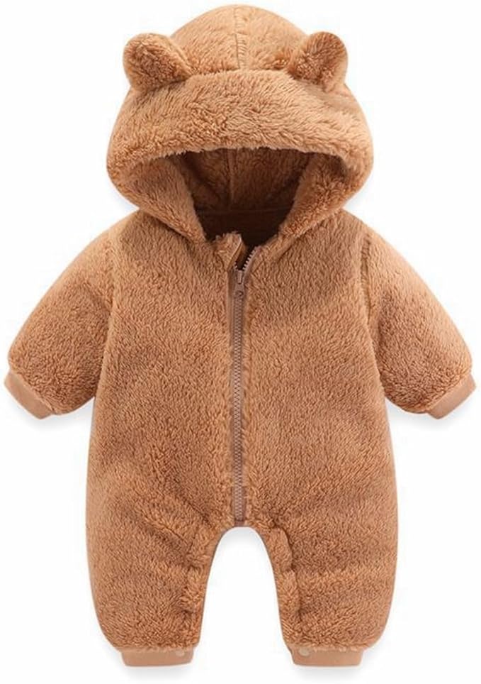 Girls Ballet Leotard Baby Girls Boys Winter Clothes Snowsuit Teddy Bear Onesie Outfit Newborn Fleece Jumpsuit Romper Coat Hooded Suit Baby Girl Bodysuit Lace (Brown, 3-6 Months)