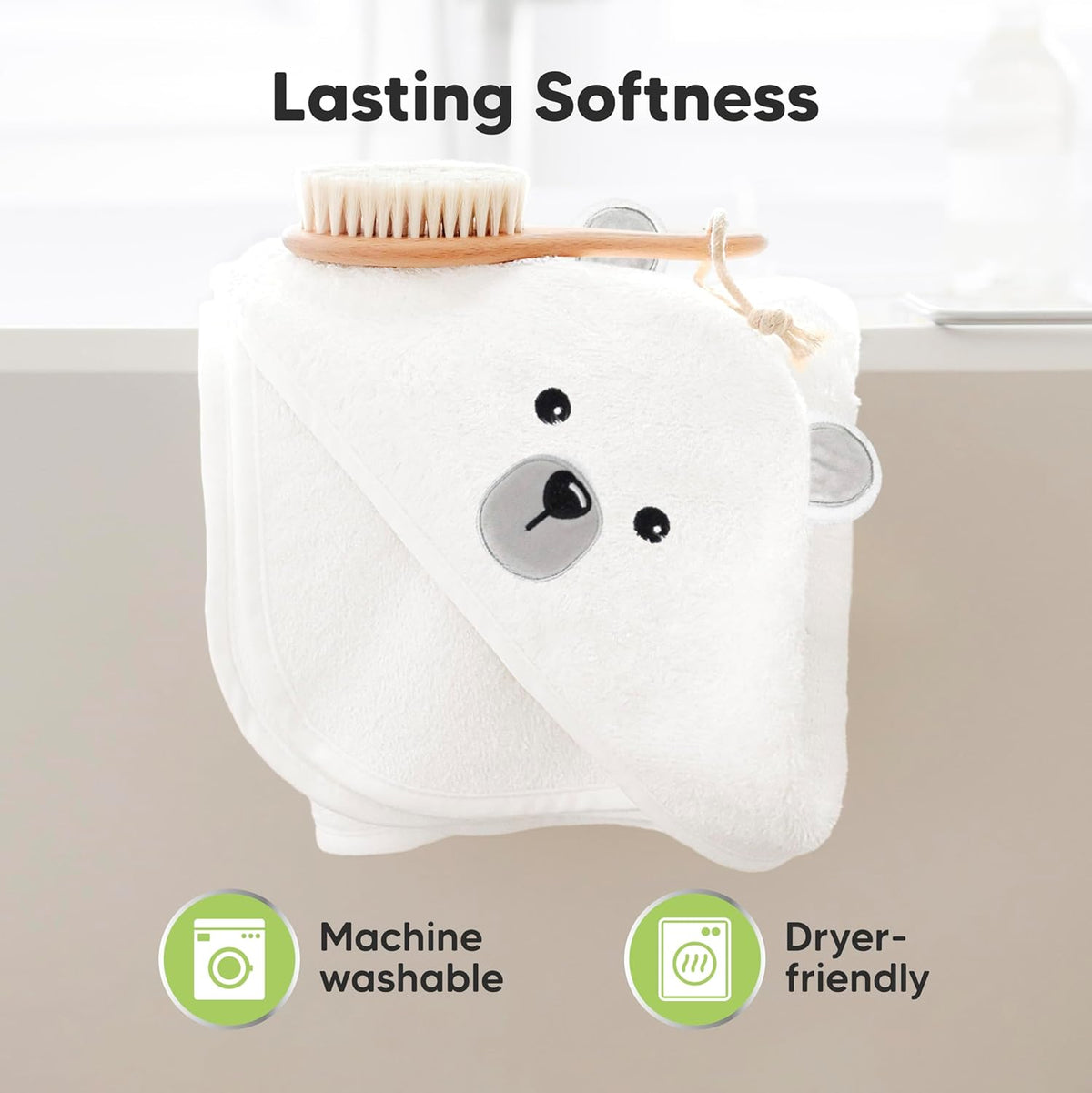 - Three Times the Absorbency – Made of viscose derived from bamboo, our baby hooded towel absorbs water three times faster than cotton towels, keeping your little one dry and clean quickly. Machine washable and dryer-friendly, is a must-have baby towel.