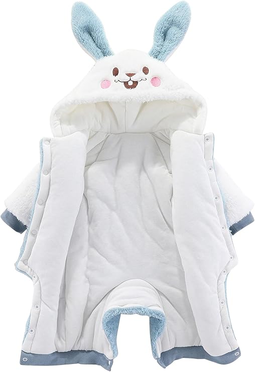 Newborn Infant Winter Fleece Warm Romper Jumpsuit Thicken Hooded Coat Outfit Zip Button Snowsuit