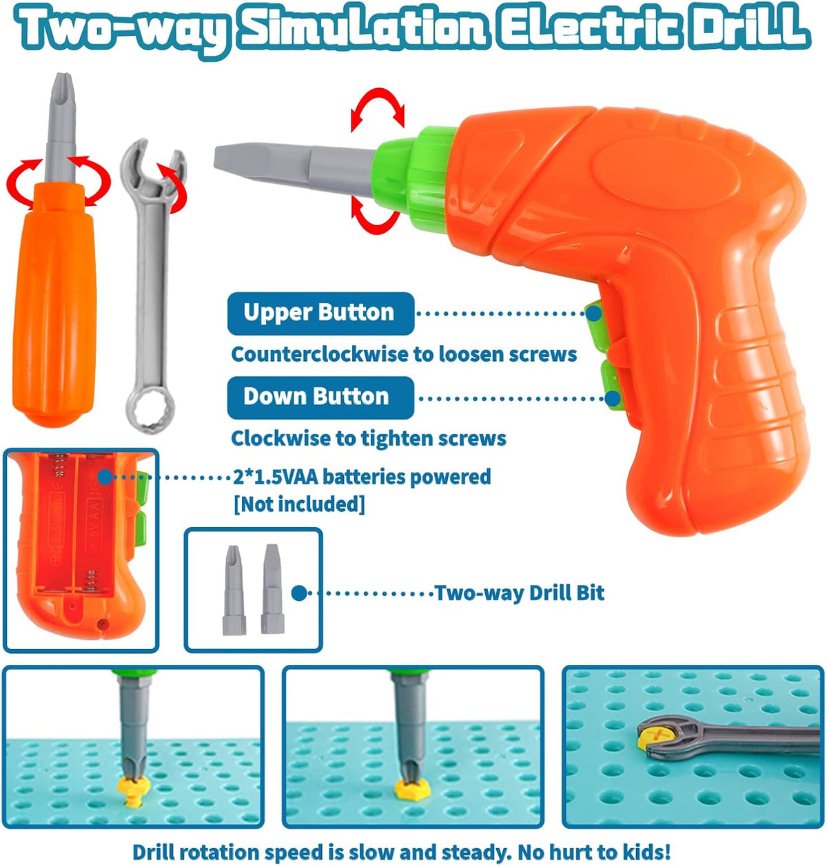 - 【Safe and Easy to Carry】This take apart toys set is made of non-toxic and high quality ABS plastic material, BPA-free. All corners are round and the drill rotation speed is slow and steady , so toddlers can play safely. Everything is neatly packed in the case, so there is no need to worry about losing accessories. It is very convenient for children to go out for entertainment, share and play games with friends!