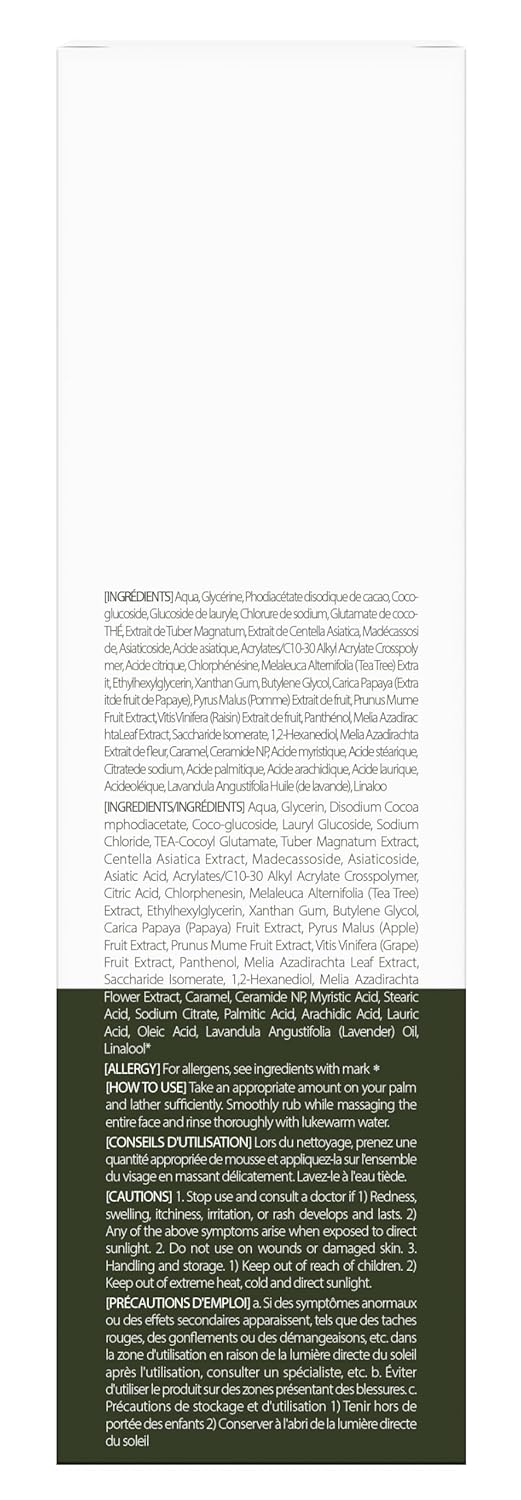 - Mild Exfoliation: Phyto green peeling complex and plant-based surfactants for gentle exfoliation with dense bubbles to remove makeup effectively without irritation.