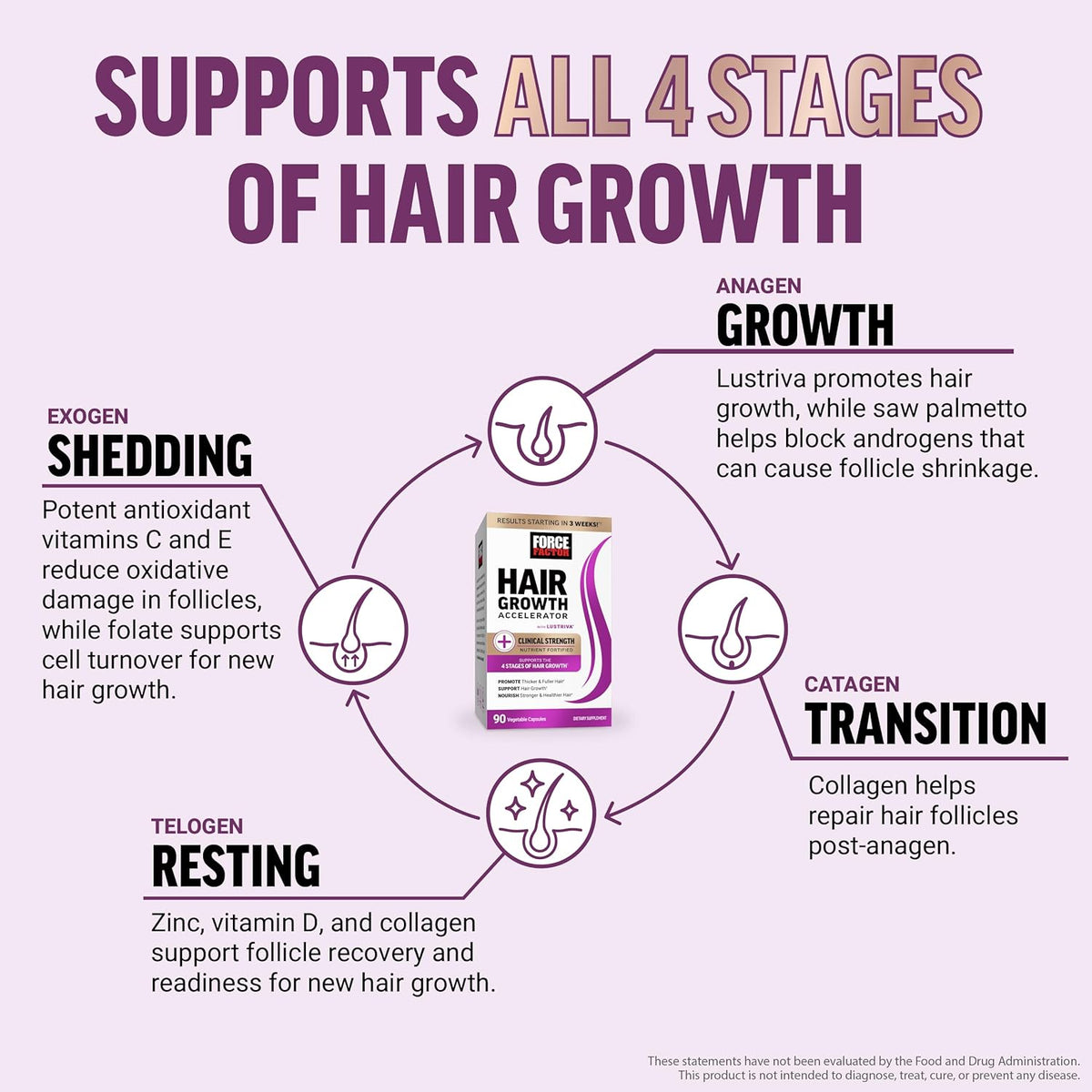 FORCE FACTOR Hair Growth Accelerator Multivitamin for Women & Men, with Lustriva, Biotin, 90 Capsules