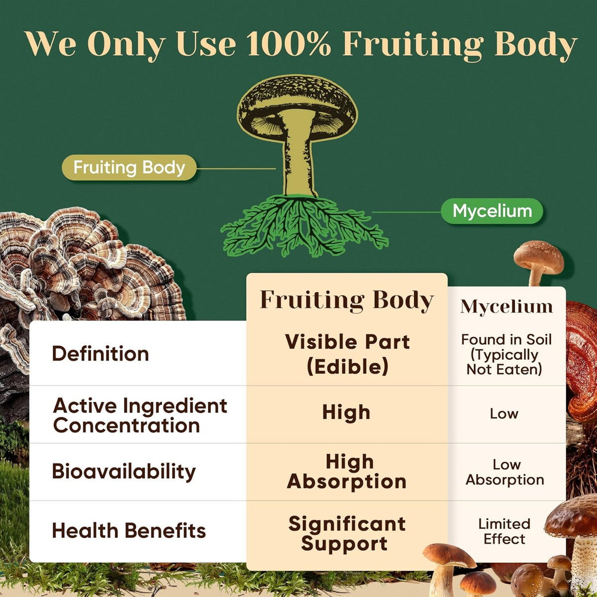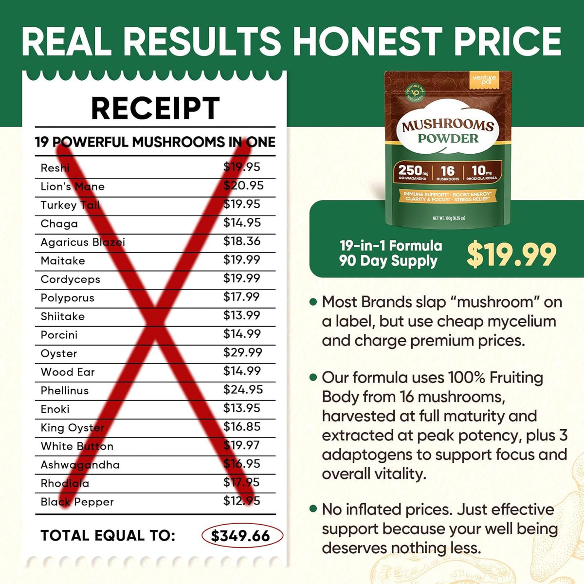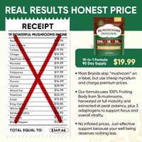 - PREMIUM FULL-SPECTRUM 16-MUSHROOM EXTRACT BLEND: Packed with Lion's Mane, Chaga, Turkey Tail, Reishi, Shiitake, King Trumpet, Cordyceps, Willow Bracket, Oyster Mushroom, Mesima, Agaricus Blazei, Maitake, Wood Ear, Enoki, White Button, and Porcini, each serving delivers 17,300mg of fresh mushrooms with a potent 10:1 extract ratio. Made from 100% fruiting bodies—no fillers, no mycelium—for maximum effectiveness