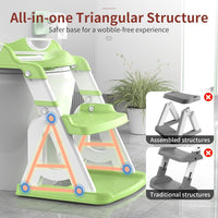 Potty Training Seat with Step Stool Ladder, Foldable Potty Training Toilet with Triangle Body Design Ladder, Slip Steps Soft Pad for Kids(Green)
