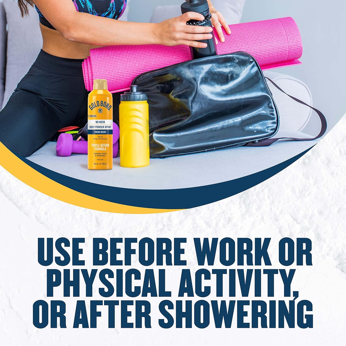 - Includes one (1) 7-oz. spray can of Gold Bond No Mess Body Powder Spray, Fresh Scent With aloe